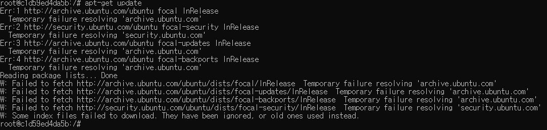 보통 필요한 패키지들은 apt-get install로 시스템에 바로 설치하지만 현재는 원인을 알 수 없는 이유로 저장소 연결이 제한된다. 패키지의 수동 설치를 위해서 먼저 docker 컨테이너를 빠져나가 apt-get이 잘 작동되는 os에서 필요한 패키지들을 다운로드 받는다.