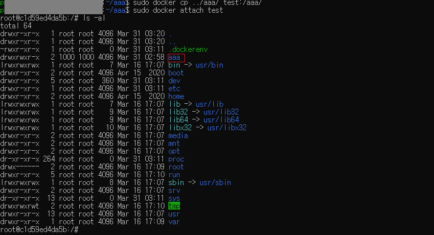 이 글에선 컨테이너 외부의 우분투에 미리 설정되어 있기 때문에 해당 파일을 도커 내부 같은 경로에 cp 명령어로 덮어씌워 줬다.