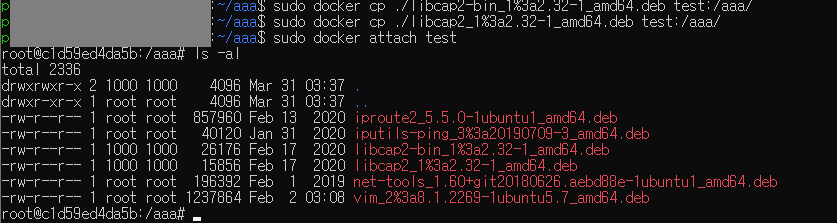 위에서 내려받은 deb 파일을 ubuntu:20.04 컨테이너에 넣어준다.